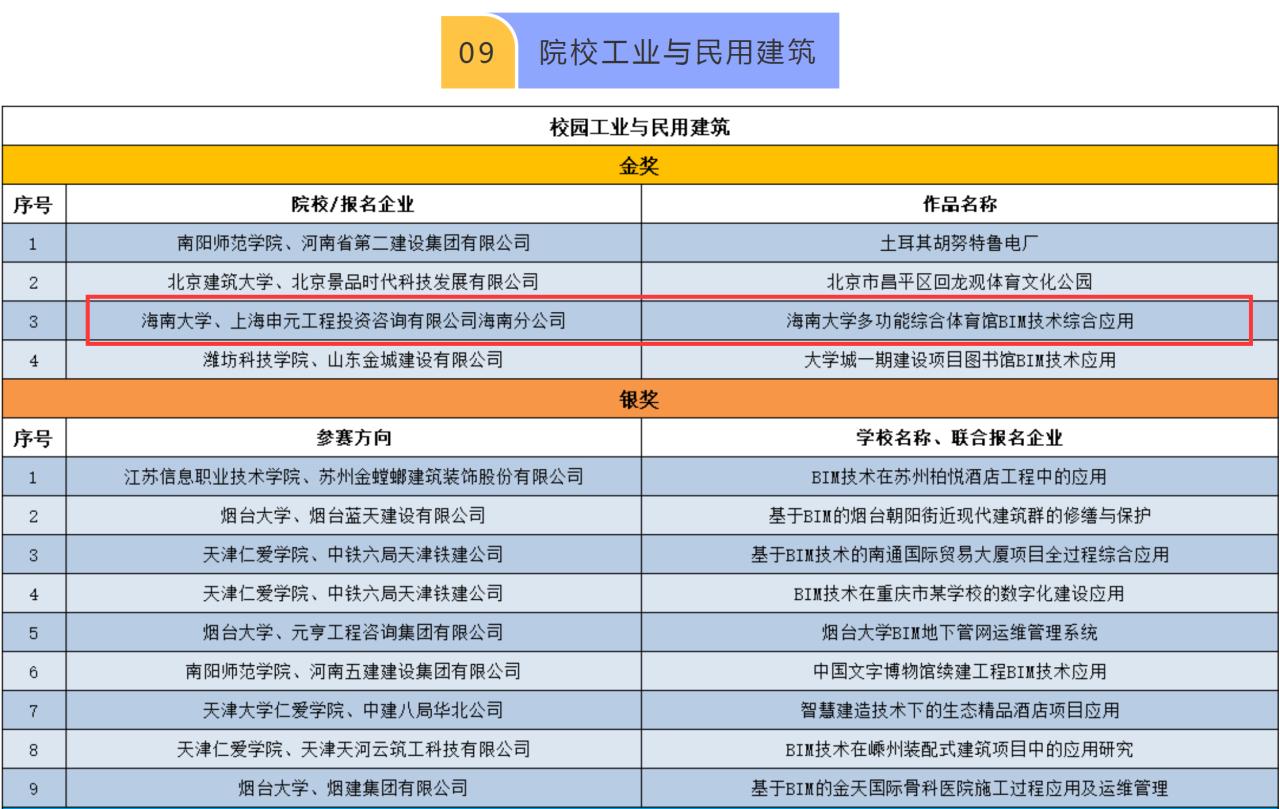 2021年11月11日,2021第四届“优路杯”全国BIM技术大赛顺利落下帷幕。海南大学BIM协会申报的项目从1145个大赛参赛作品中脱颖而出,继2020年后再次蝉联金奖项目!由海南大学和上海申元工程投资咨询有限公司海南分公司联合申报的“海南大学多功能综合体育馆BIM技术综合应用”荣获院校组工业与民用建筑金奖,由中国建筑第二工程局有限公公司和海南大学联合申报的“海南生态软件园G地块美伦熙语三期项目BIM技术综合应用” 荣获企业组工业与民用建筑金奖。