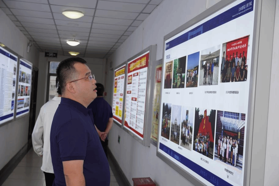 活动结束后,参会人员到校园内徒步参观,李艳书记向校友们介绍研发楼5楼的学院走廊文化,让校友对学院当前状况有了更直观的了解。带领校友们到校史馆参观了学校新沙盘、参观协同创新中心的建设现场,介绍学校的发展变化,并在新南门处进行了活动合影留念。