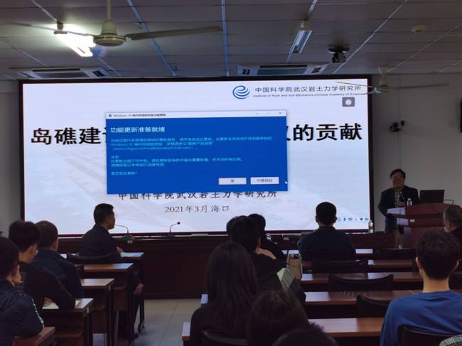 在提问环节中,汪稔研究员与王栋教授回答了师生们的提问,并共同探讨了岛礁建设与岩土工程研究的相关问题,以自己科研经历勉励青年教师把握前沿学科方向,勇于创新,加强合作,助力南海岛礁和海南自由贸易港基础设施建设。