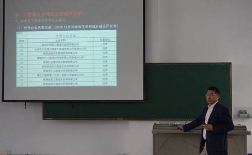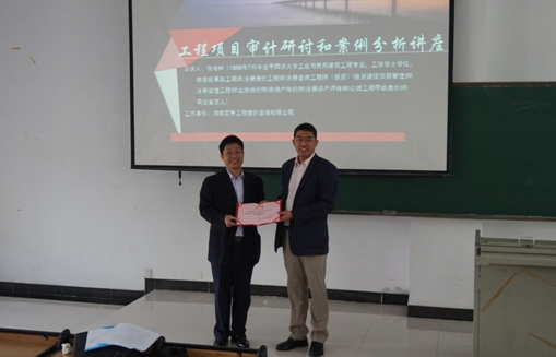 12月26日,海南定宇工程造价咨询有限公司董事长张裕林教授为我院工程管理系2014级的学生进行了工程项目审计研讨和案例分析讲座。授课当天,我院李艳荣书记,曹宝珠院长以及工程管理系各位老师都参与了开课仪式,并由李艳荣书记为张教授颁发了客座教授聘任证书。
