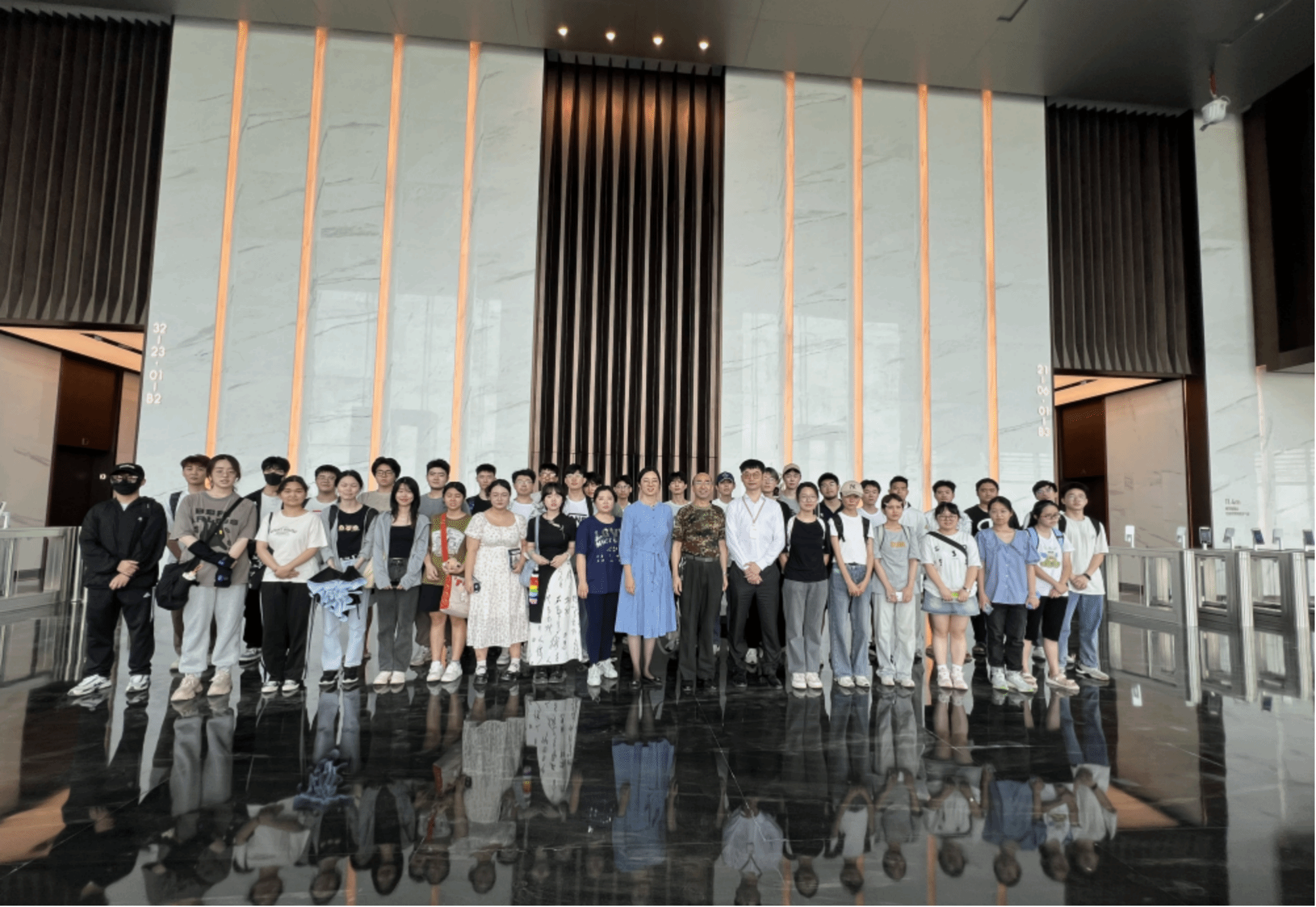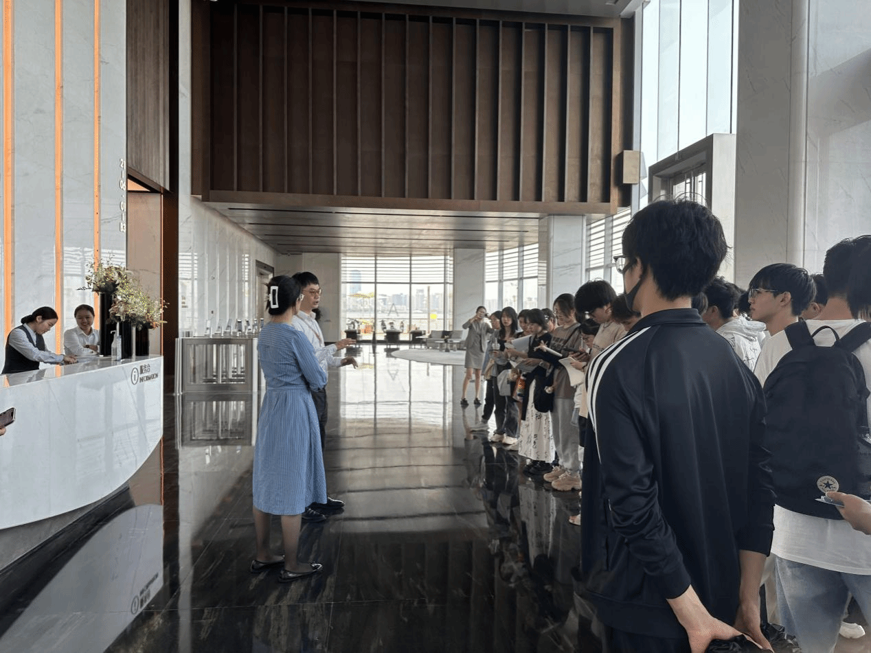 最后,全体师生在郑顾问的带领下分批次有序地参观了17层精装办公层,以及33层顶层办公空间,为大家讲解了项目运用的呼吸幕墙系统、架空布线、分区电梯、钢结构防火等技术要点。针对同学们的疑问,从建筑优势、功能分布、业态布局、结构特点、绿建材料等诸多方面进行了专业解答。