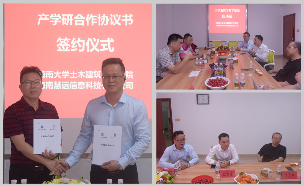 土木学院副院长邱宙廷和海南慧远信息科技有限公司董事长王庆煜分别代表双方签署产学研合作协议书,这标志着校企双方正式建立产学研合作关系。这是响应2021年4月2日沈晓明书记在省委人才工作委员会上的号召,构建全方位、多元化、立体式人才培养体系的重要举措,学院根据省委的要求及社会发展的需要,不断优化教学内容、扩展教学方式,努力培养学生成为社会有用的专业人才。
