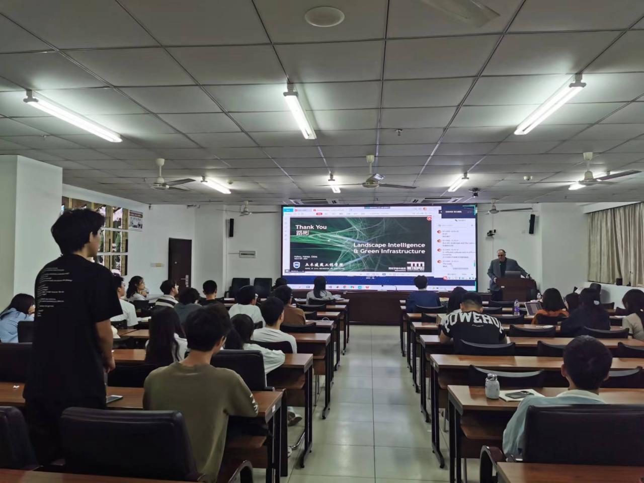 此次讲座,使建筑专业学生了解到城市景观设计方法和景观智能领域的前沿信息,提升了同学们对于景观智能与绿色基础设施的兴趣。讲座结束后,同学们踊跃提出问题,与Alex Camprubi先生互动交流,本次讲座在轻松的氛围中圆满结束。
