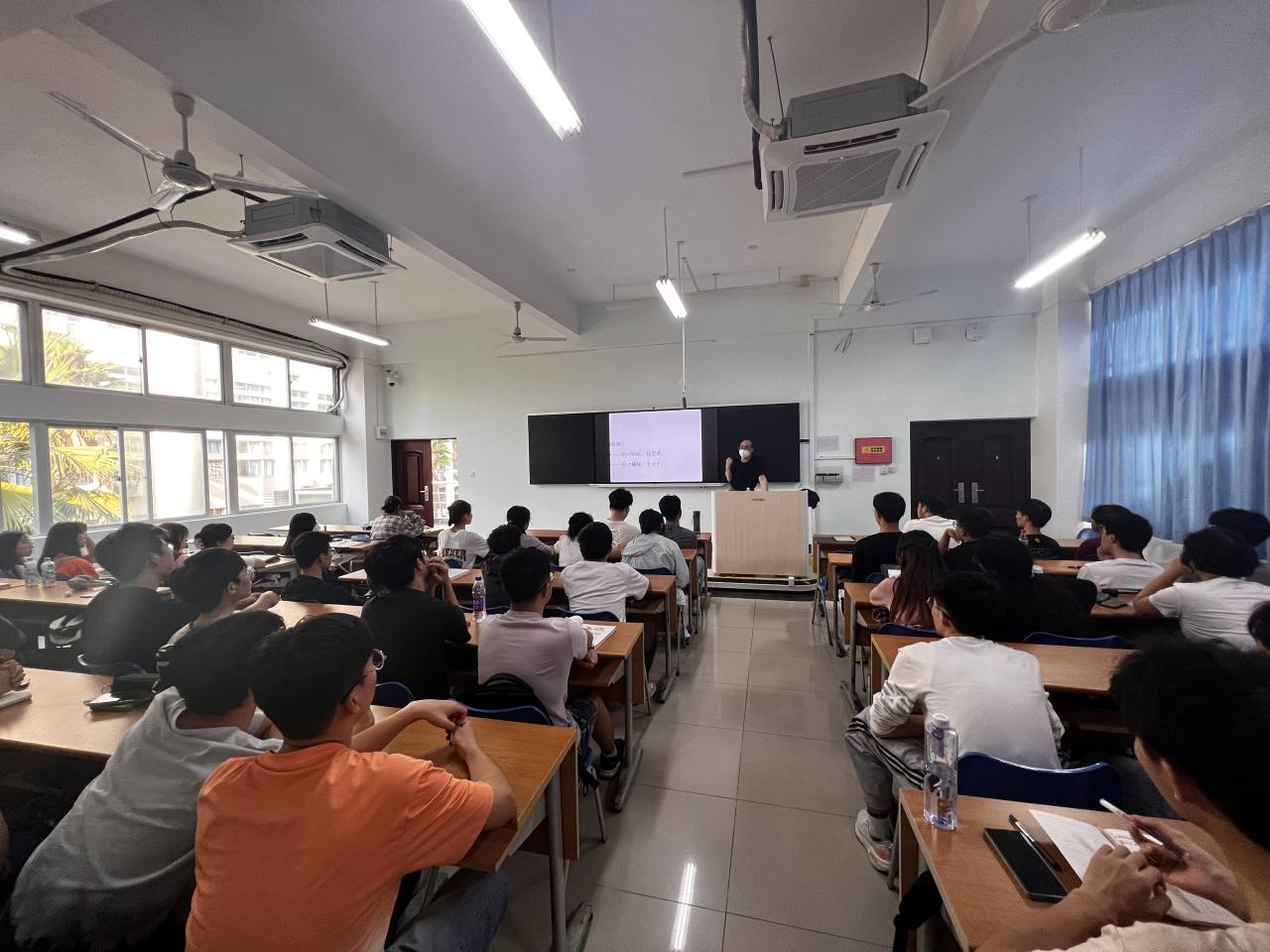在针对二年级的课程,白教授为刚刚接触建筑设计的同学们进行了《如何进行建筑实地调研》的专题讲座。讲座过程中,白教授以设计题目中的咖啡厅为例,向同学们说明了进行建筑的实地调研和相关人员访谈的基本方法和注意事项。此外,在《小住宅设计的一些话》主题讲座中,白教授也针对设计任务中的小住宅,为同学们进行了建筑设计定位与使用人群行为模式的讲解。白教授的讲座生动幽默,建筑系的同学也展现出了浓厚的学习兴趣。