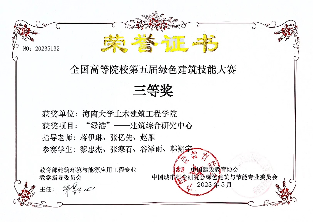 近日,由教育部建筑环境与能源应用工程专业教学指导委员会指导、中国建设教育协会与中国城市科学研究会绿色建筑与节能专业委员会联合主办的“第五届全国高等院校绿色建筑设计技能大赛”获奖结果揭晓。版权所有:402永利(集团)有限责任公司建筑系设计作品荣获三等奖1项、优秀作品奖1项。参赛学生是建筑系2020级学生黎忠杰、张寒石、谷泽雨、韩翔宇、许珑驰、廖荟、孙晓研、陈慧欣,指导教师是蒋伊琳、张亿先、易法殊、赵雁。