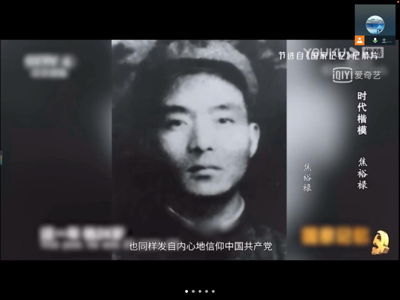 党员代表带领参会党员共同学习英烈先进事迹。首先,预备党员孙康瑞同志带领参会同志了解杨靖宇将军的抗日英雄事迹。白山黑水铸忠魂,杨靖宇将军在绝粮数天的情况下仍选择舍生取义、与敌人决战到底,他的革命精神感染着每一位党员同志。随后,预备党员王玉博同志为同志们讲述焦裕禄同志的感人事迹,参会同志一起线上观看焦裕禄同志的先进事迹视频。焦裕禄同志投身建设、前仆后继、一心为民的精神值得每一位党员同志学习。接着,预备党员刘景锐同志讲述了陈祥榕战士的英雄事迹。陈祥榕在中国西部边陲喀喇昆仑高原加勒万河谷边境冲突中突入重围,营救战友,奋力反击,毫不畏惧,英勇牺牲。“清澈的爱,只为中国”,00后正在撑起祖国的一片天!最后,陈雪鹏同志总结此次党日活动,深切缅怀革命先烈,并呼吁党员同志积极参加“网上祭英烈”活动,向革命先烈表示无限的敬意。